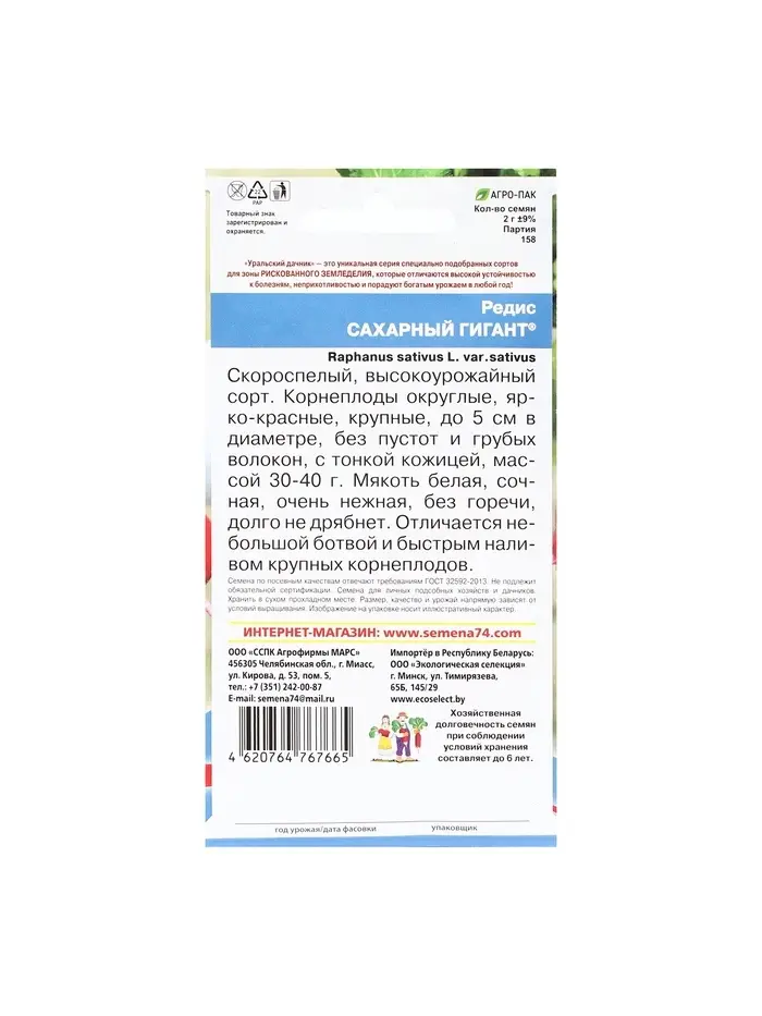 Набор семян Редис "Сахарный Гигант", 5 шт.