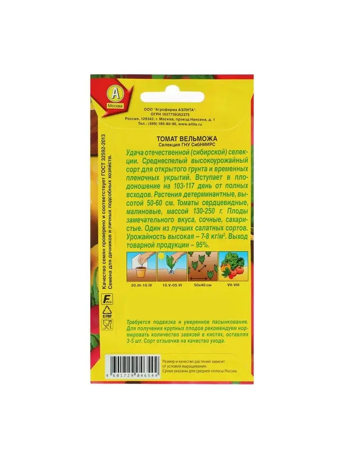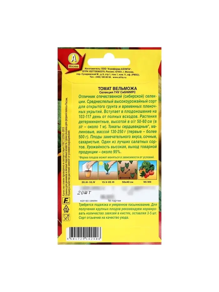 Набор семян Томат "Вельможа", детерминантный, низкорослый, 5 шт.