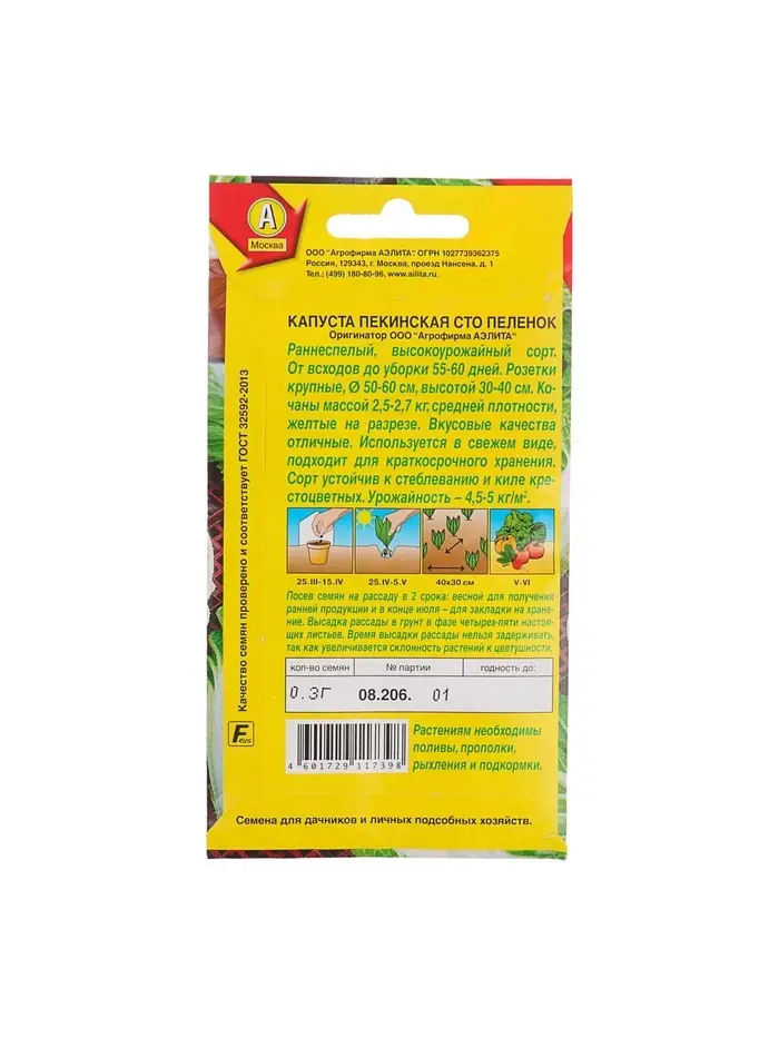 Набор семян Капуста пекинская "Сто пеленок", 5 шт.
