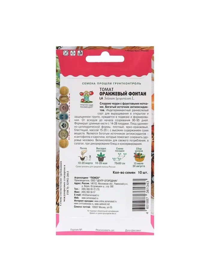 Набор семян Томат "Оранжевый Фонтан", 5 шт.