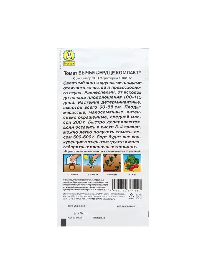 Набор семян Томат "Бычье сердце", компакт, детерминантный, 5 шт.
