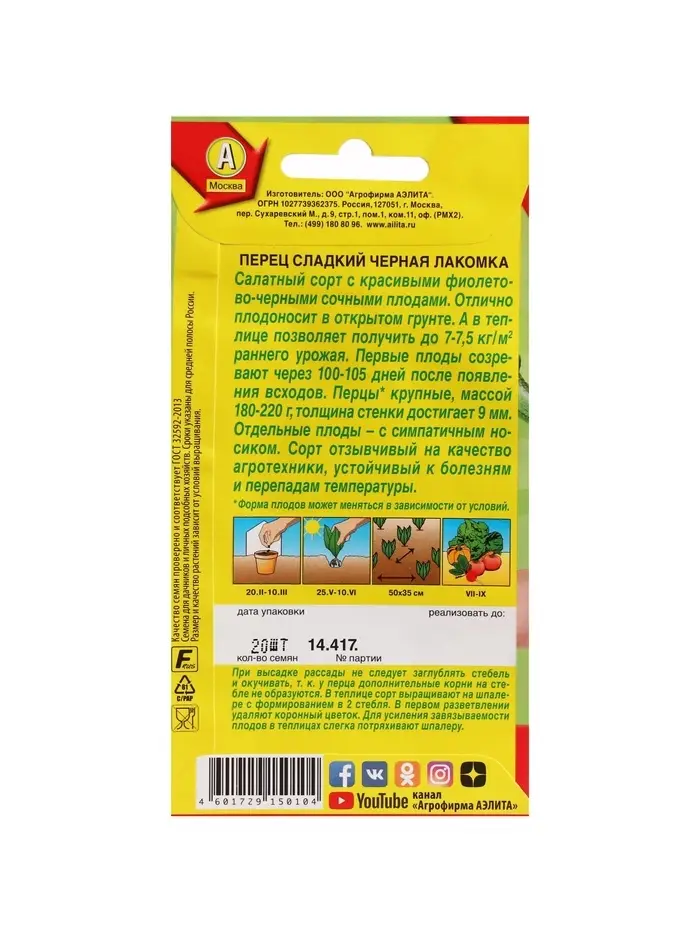 Набор семян Перец сладкий "Черная лакомка", 5 шт.