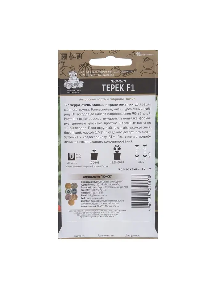 Набор семян Томат "Терек", F1, индетерминантный,высокорослый, 5 шт.