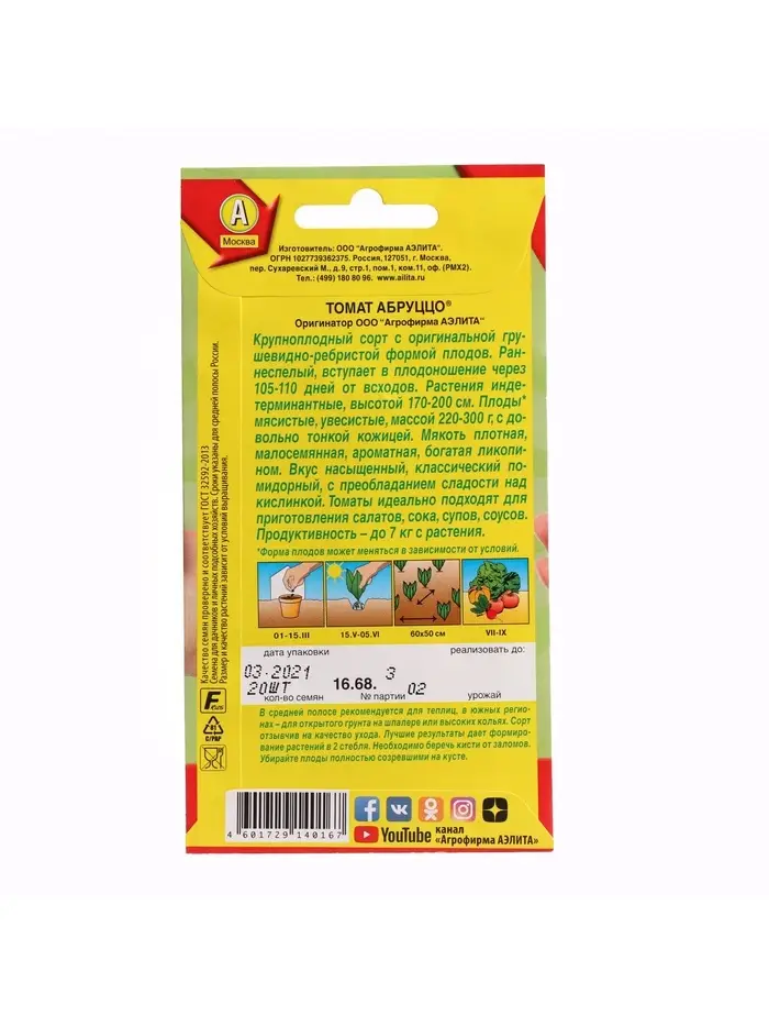 Набор семян Томат "Абруццо", индетерминантный,высокорослый, 5 шт.