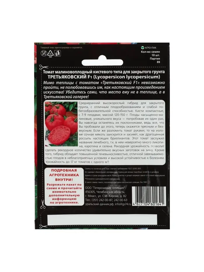 Набор семян Томат "Третьяковский" F1 среднеплодный, среднеранний,высокорослый, 3 шт.