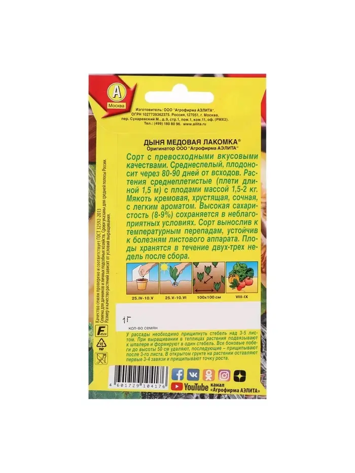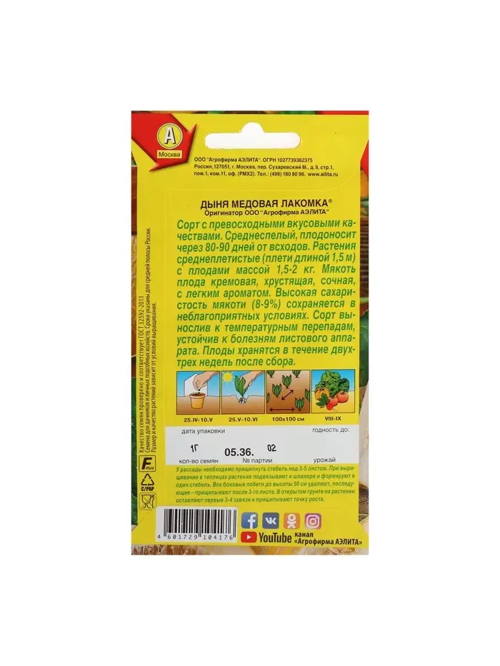 Набор семян Дыня "Медовая лакомка", 5 шт.