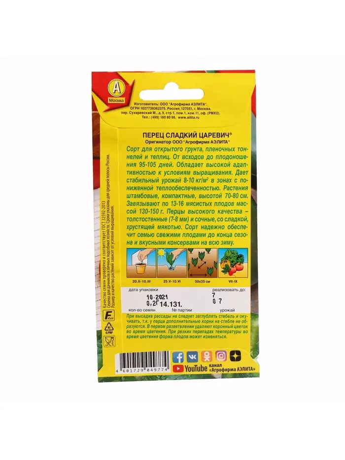 Набор семян Перец сладкий "Царевич", 5 шт.