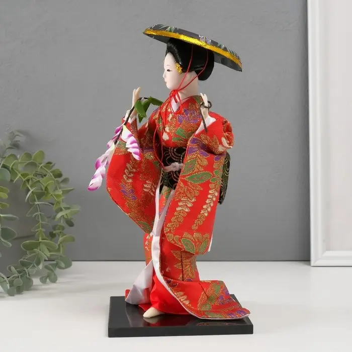 Кукла коллекционная «Японка с цветочной ветвью и в шляпе», 30 см
