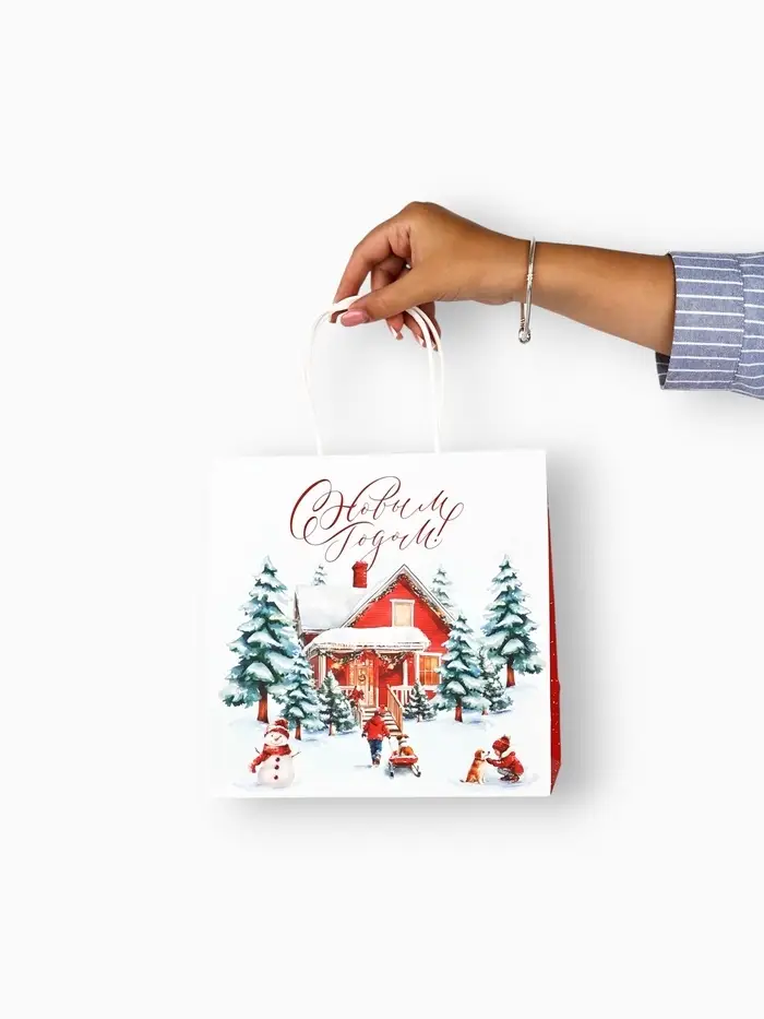 Набор пакетов крафтовых «Новогодний», 10 шт, 22 × 22 × 11 см