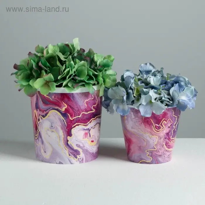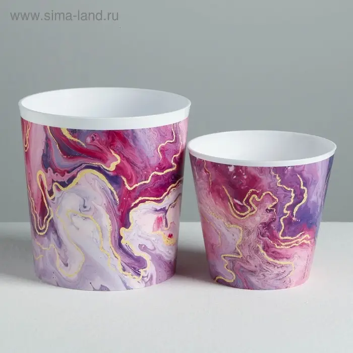 Набор кашпо для цветов 2 в 1 «Мрамор», 0,8 и 1,6 л, 11 х 12 и 14 х 14 см