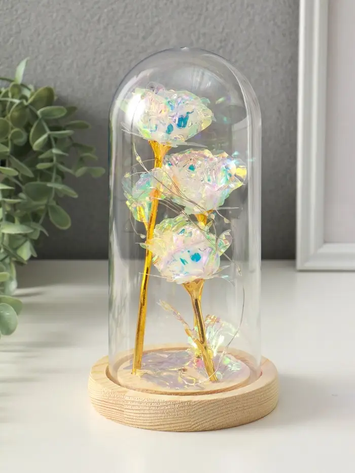 Сувенир свет "3 розы в колбе" LED 3хААА серебристый 11х11х22 см