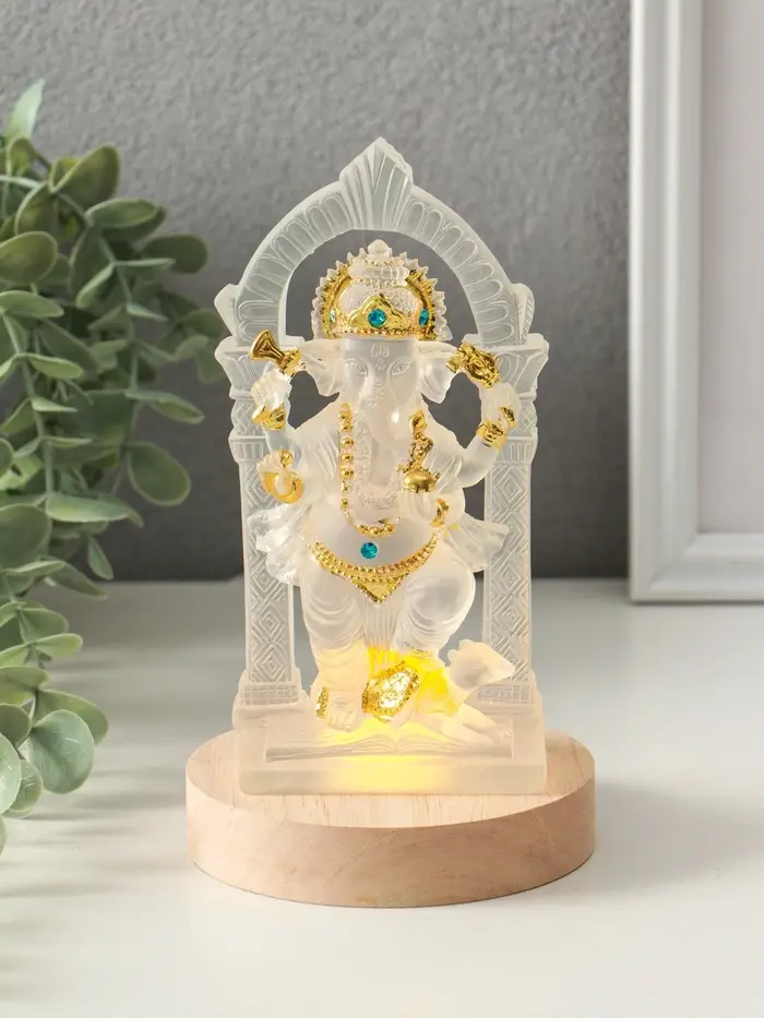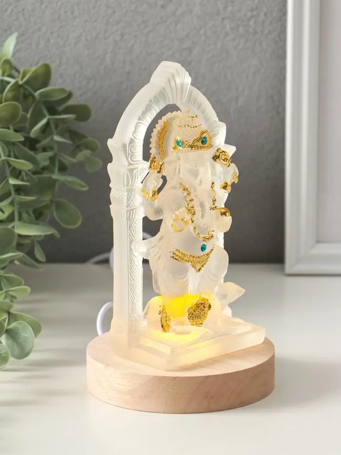 Сувенир полистоун свет "Ганеша в арке" прозрачный 10х10х18,5 см