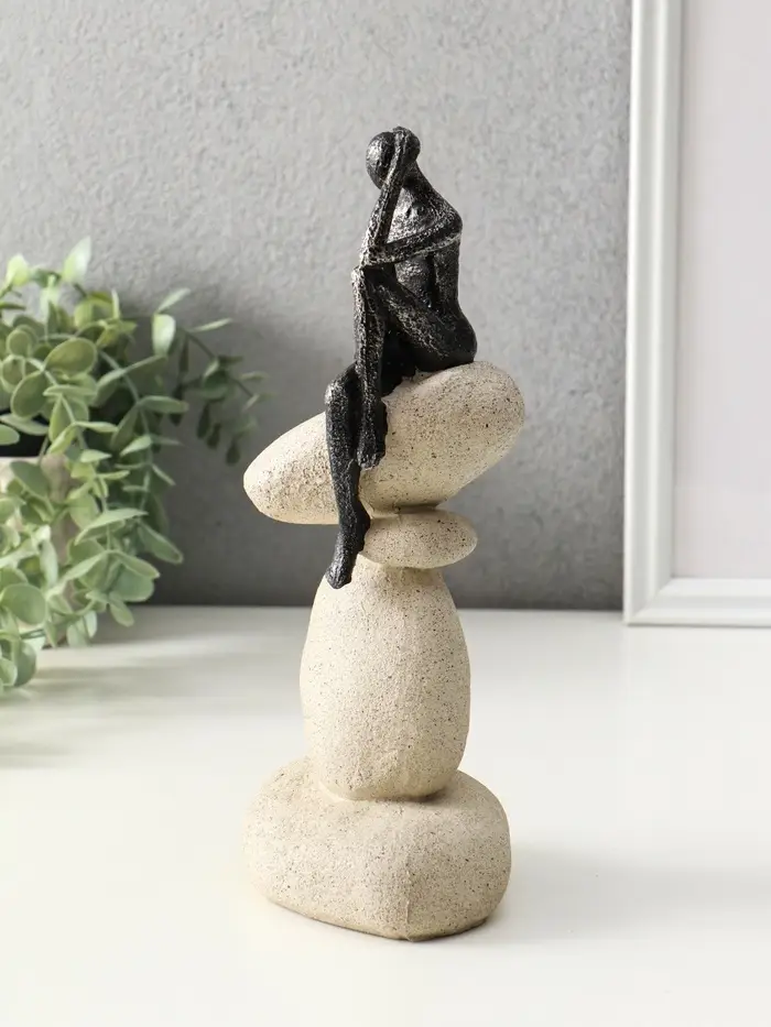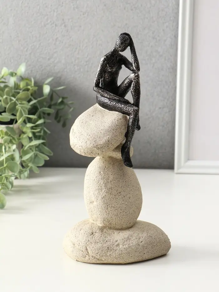 Сувенир полистоун "Абстракция. Мыслитель и сад камней" бронза с бежевым 12х9х25,5 см