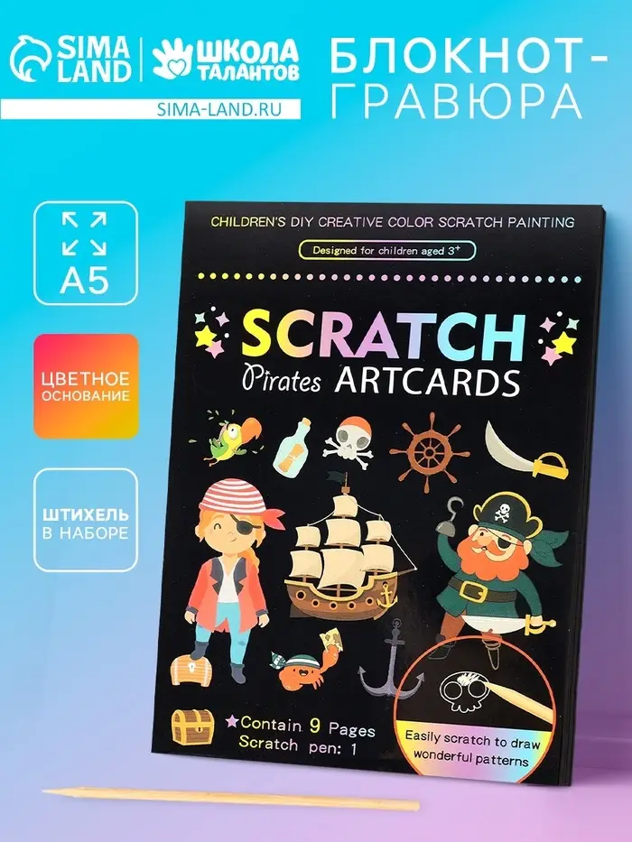 Гравюра блокнот "Пираты", 9 листов, штихель
