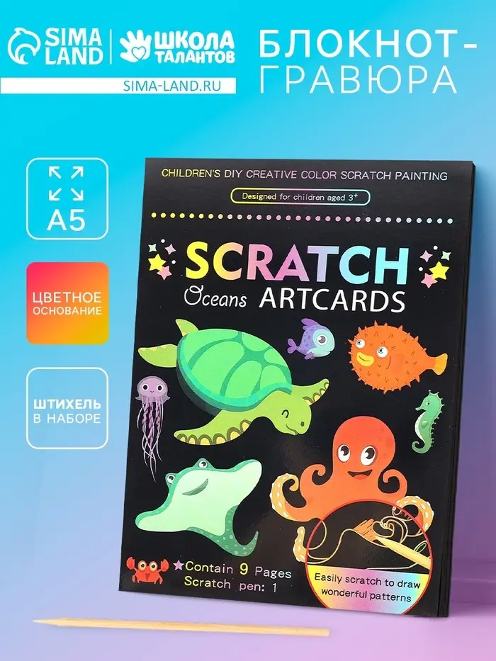 Гравюра блокнот "Морские жители", 9 листов, штихель