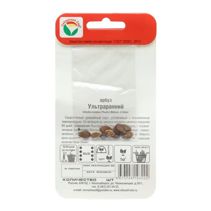 Семена Арбуз «Ультраранний», 10 шт., скороспелый, «Сибирский сад»