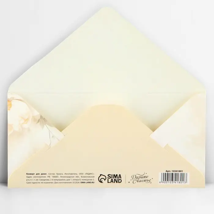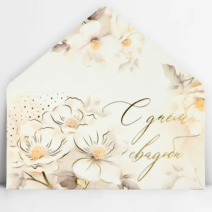 Конверт для денег «С днём свадьбы», тиснение, 16.5×8 см