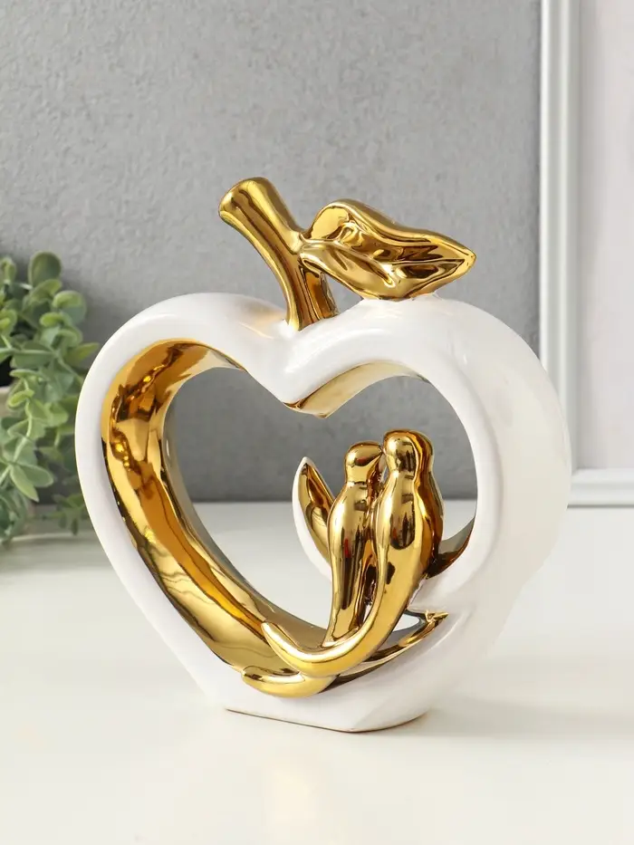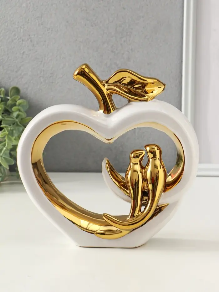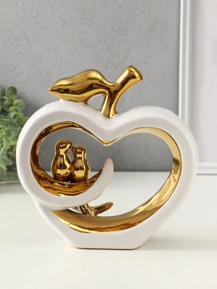 Сувенир керамика "Две птички на яблоке" белый с золотом 7х22х22,5 см