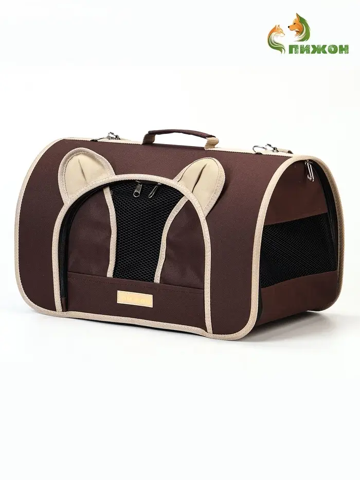 Сумка - переноска для животных, 2 входа, 49 х 30 х 35 см, коричневая