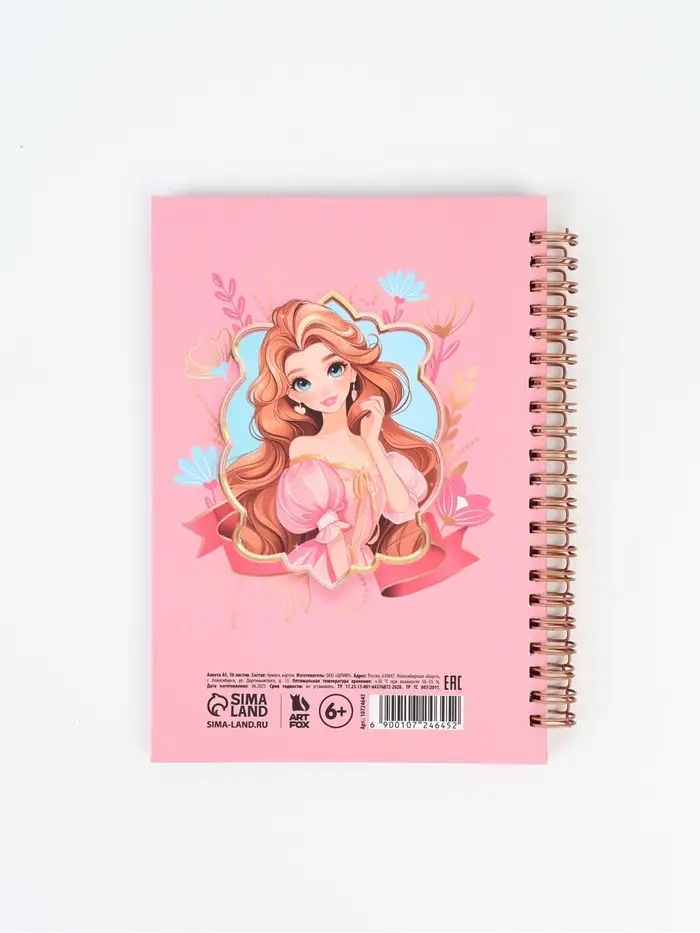 Анкета для девочки А5, 50 листов. Твердая обложка "Принцесса"