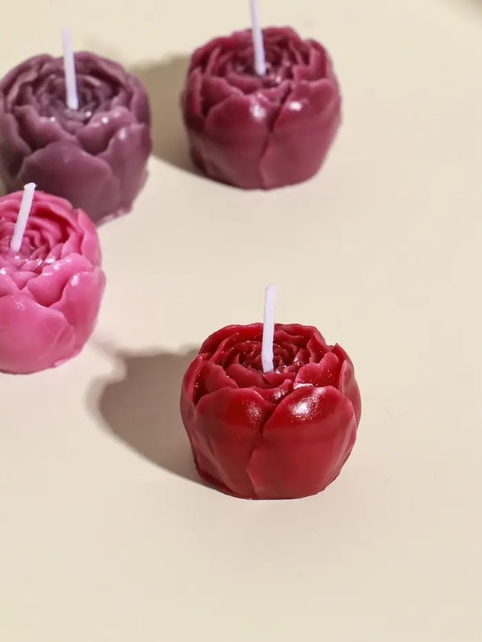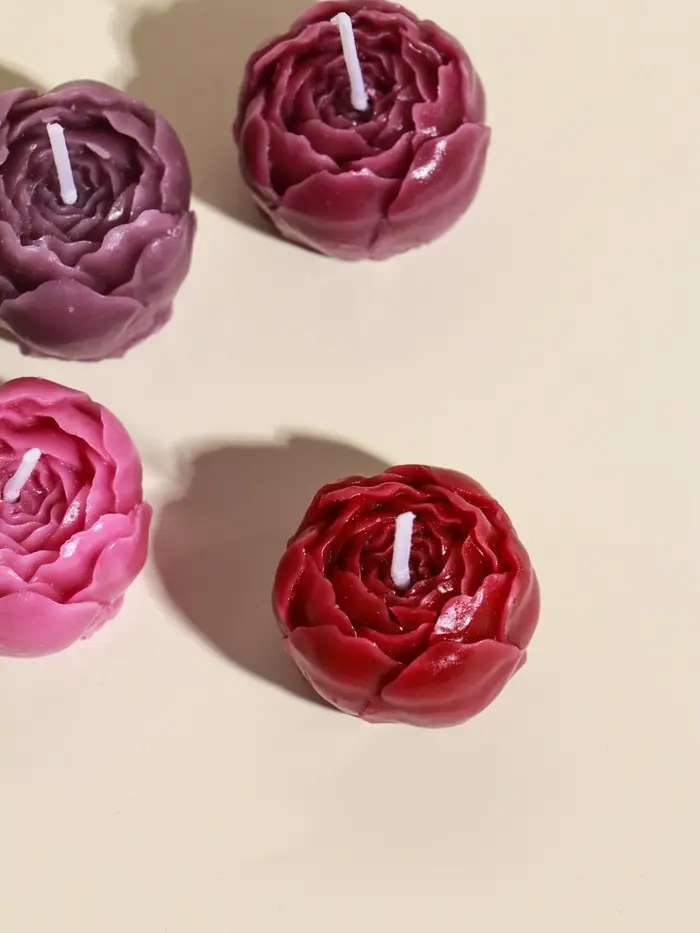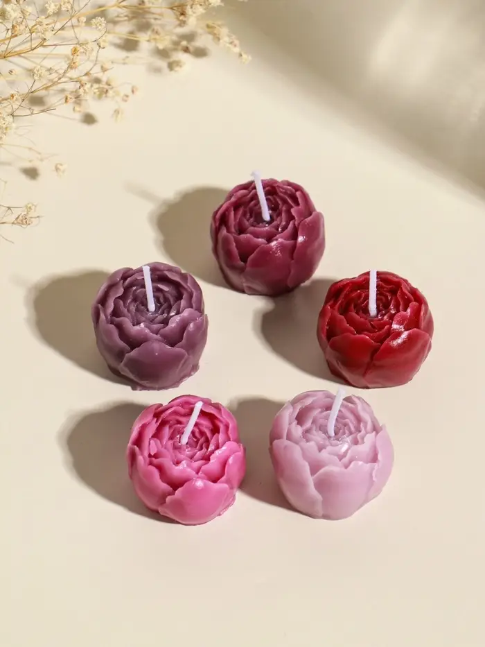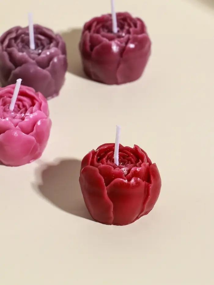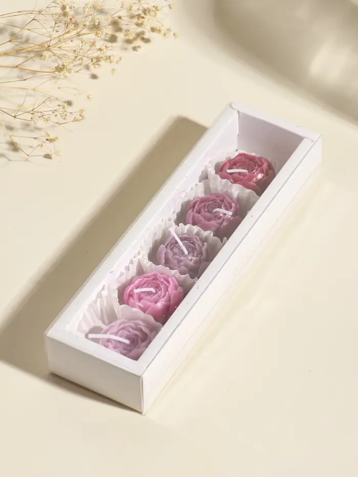 Набор свечей декоративных "Пионы" 5 шт 3,5х3,5х2,5 см розово-фиолетовые 6,5х22,5х3,5 см