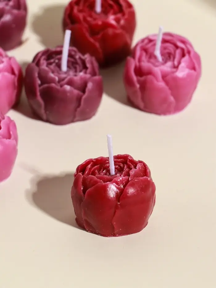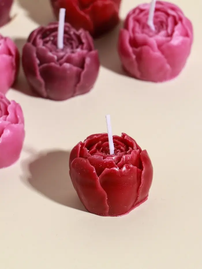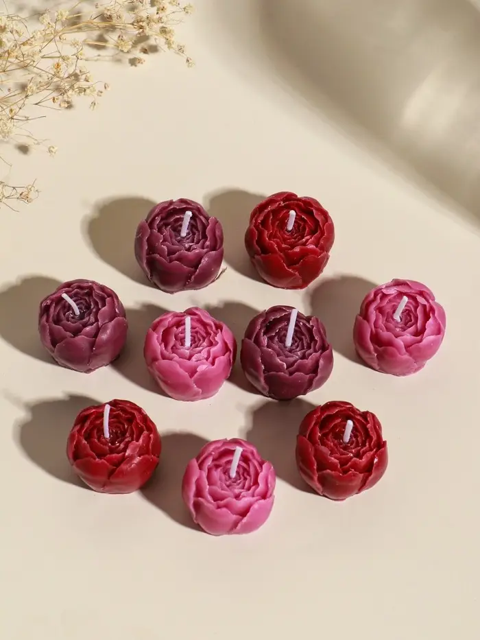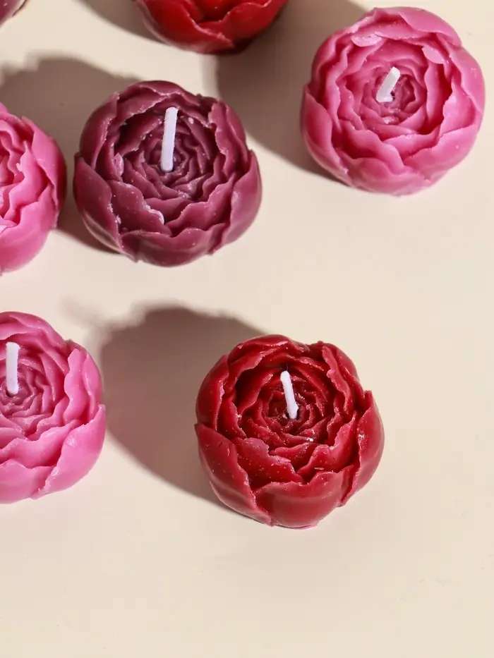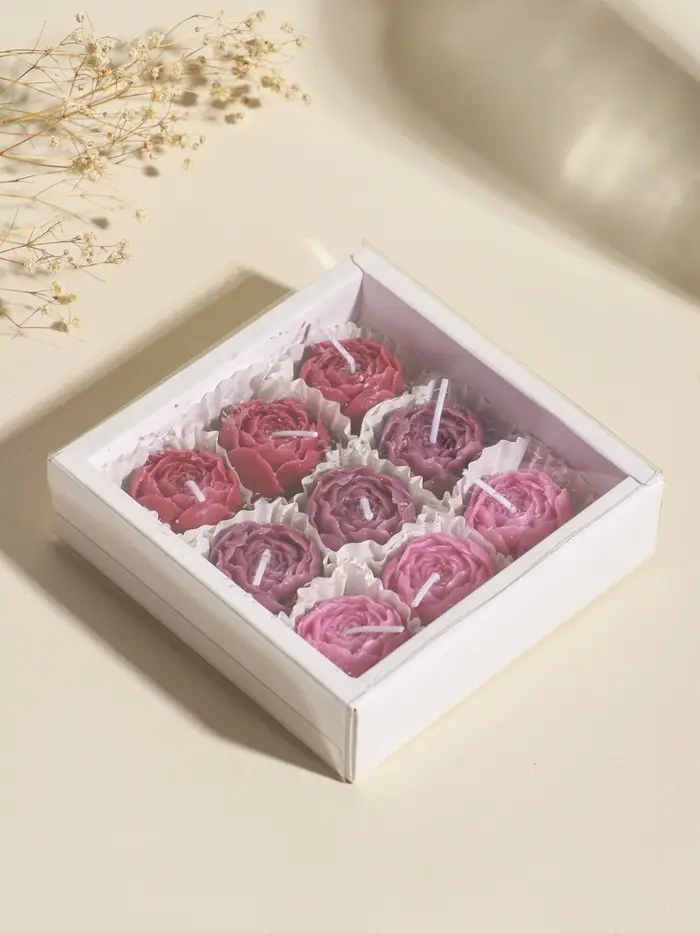 Набор свечей декоративных "Пионы" 9 шт 3,5х3,5х2,5 см розово-фиолетовые 14х14х4 см