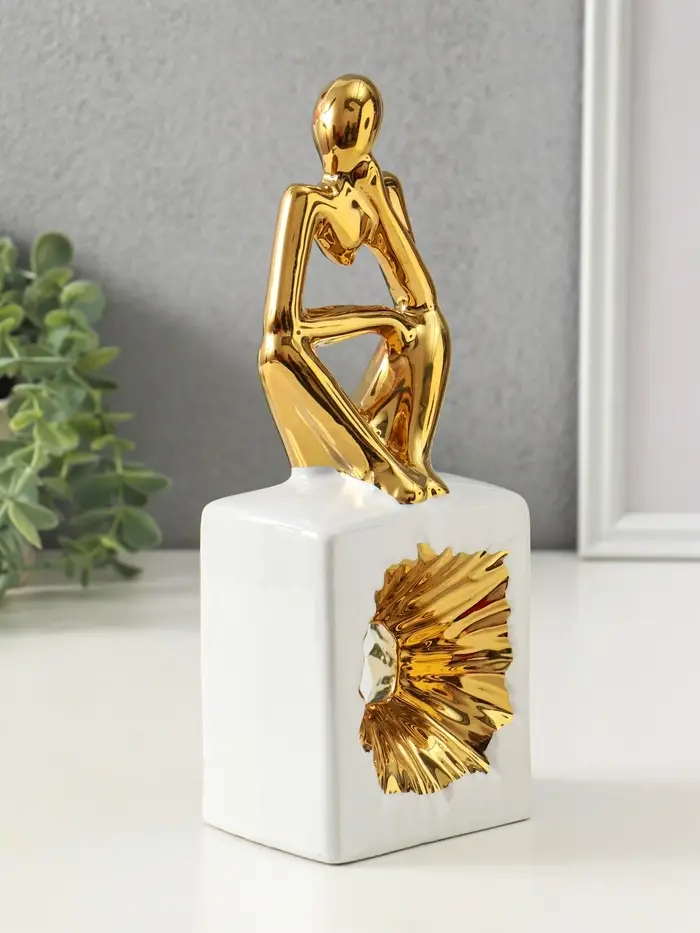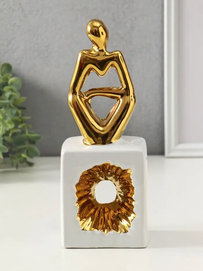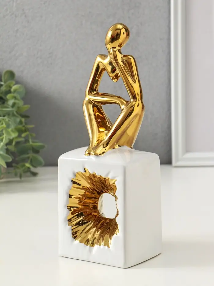 Сувенир керамика "Задумчивый человек" белый с золотом 7х9,5х26 см