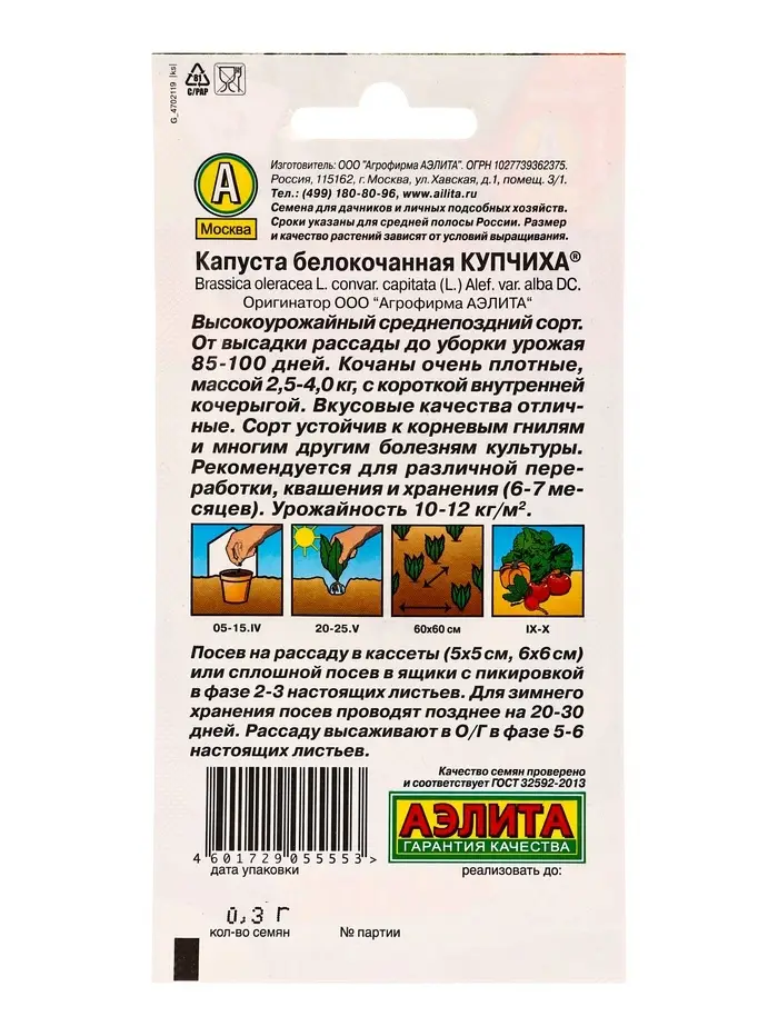 Семена Капуста б/к Купчиха П, Ц/П,0,3 г