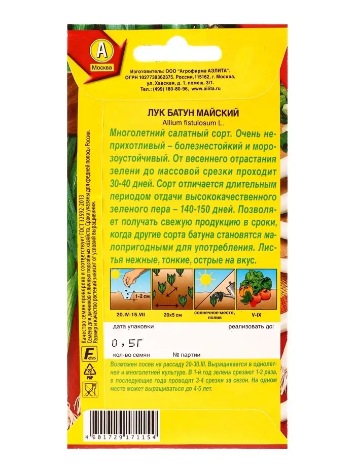 Семена Лук батун Майский Мн, Ц/П,0,5 г