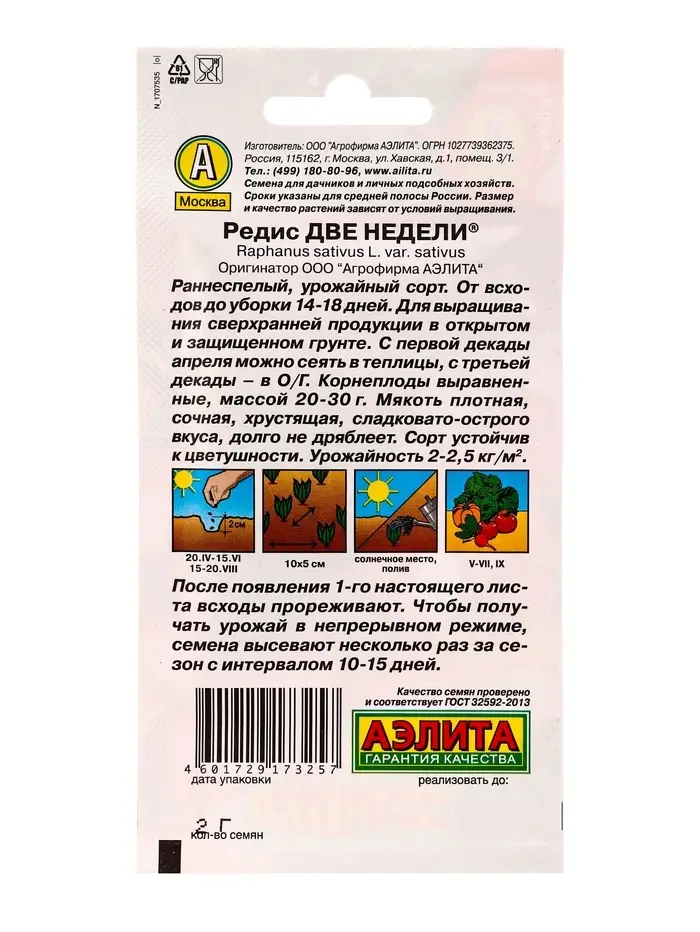 Семена Редис Две недели , Ц/П,2 г