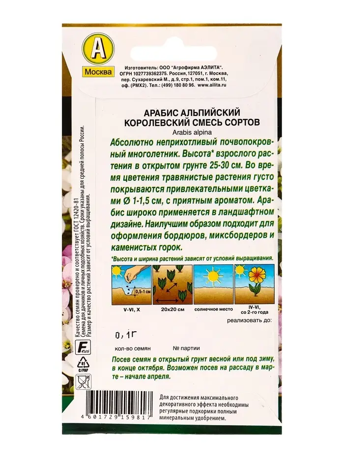 Семена цветов Арабис Королевский, смесь сортов Мн Золотая серия, Ц/П,0,1 г