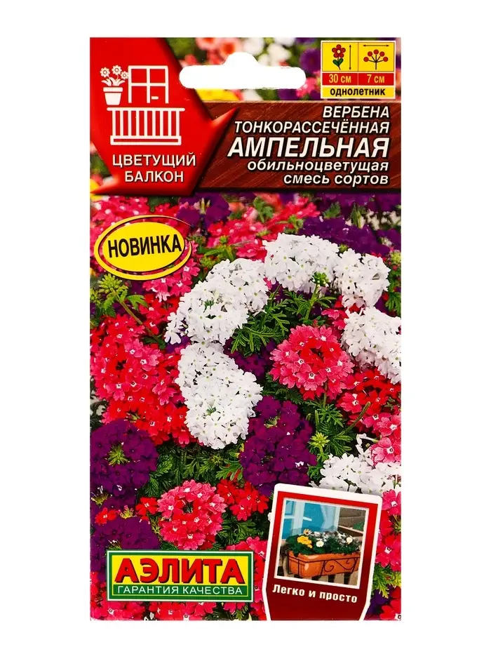 Семена цветов Вербена Ампельная обильноцветущая, смесь сортов Цветущий балкон, Ц/П,30 шт.