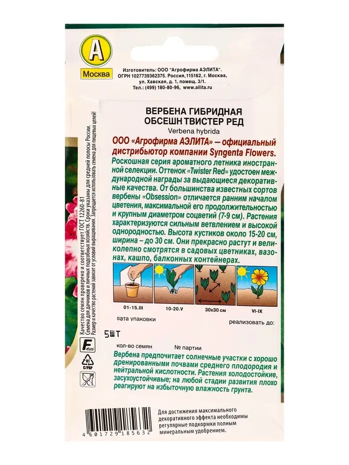 Семена цветов Вербена Обсешн твистер ред Спецсерия Syngenta, Ц/П,5 шт.
