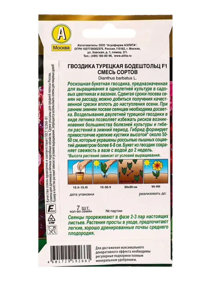 Семена цветов Гвоздика турецкая Бодештольц F1, смесь сортов Золотая серия, Ц/П,7 шт.