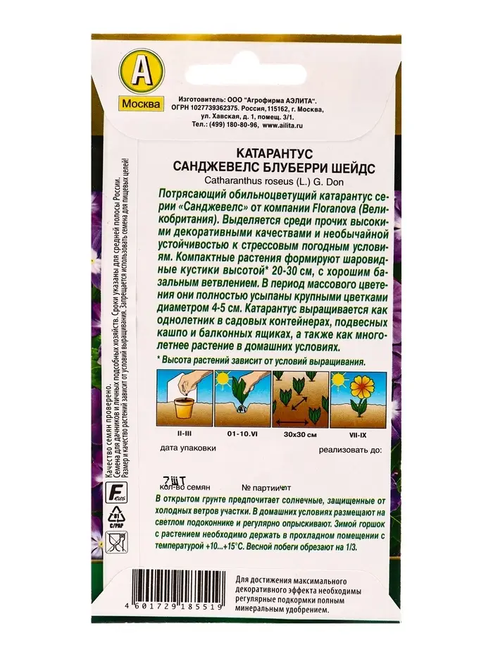 Семена цветов Катарантус Санджевелс блуберри шейдс С. Floranova Золотая серия, Ц/П,7 шт.