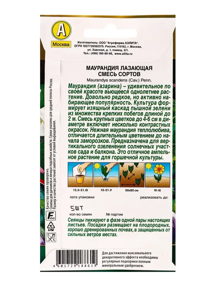 Семена цветов Маурандия лазающая, смесь сортов Золотая серия, Ц/П,5 шт.