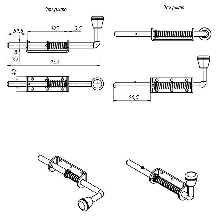 Задвижка дверная ЗД-11, покрытие цинк