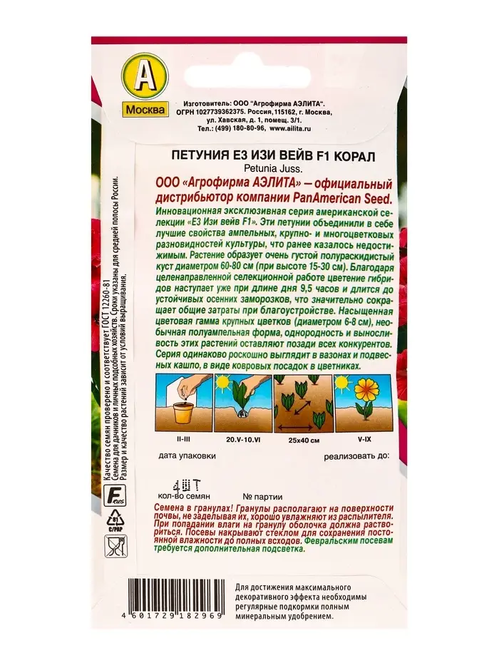 Семена цветов Петуния Е3 Изи Вейв F1 корал (драже) PanAmerican Wave, Ц/П,4 шт.