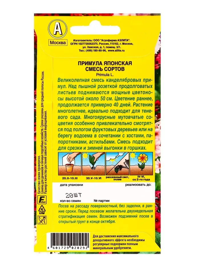 Семена цветов Примула японская, смесь окрасок Мн, Ц/П,20 шт.