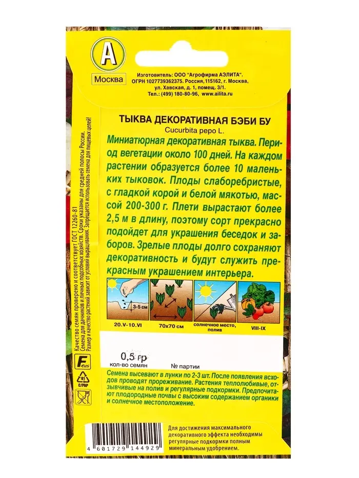 Семена цветов Тыква декоративная Бэби бу , Ц/П,0,5 г
