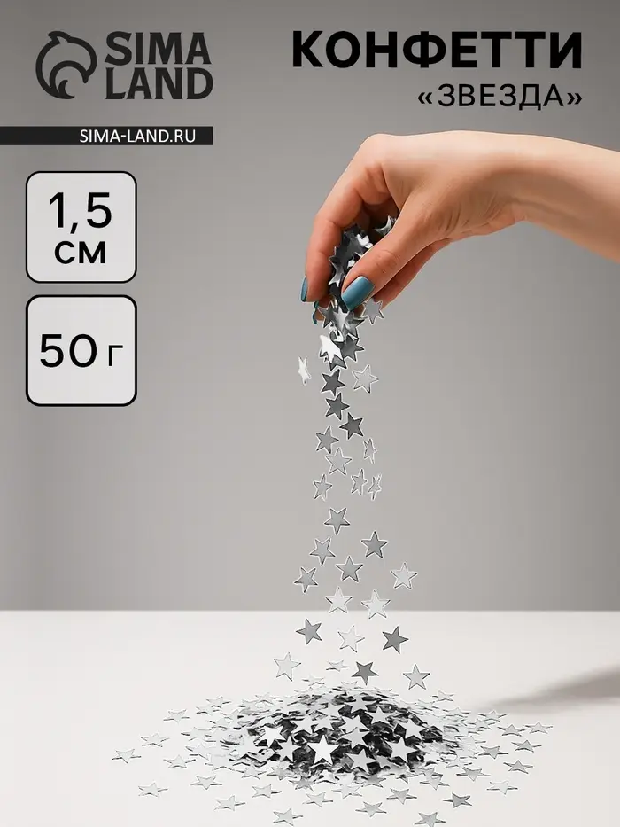 Конфетти «Звезда», серебро, хром, 1.5 см, 50 г