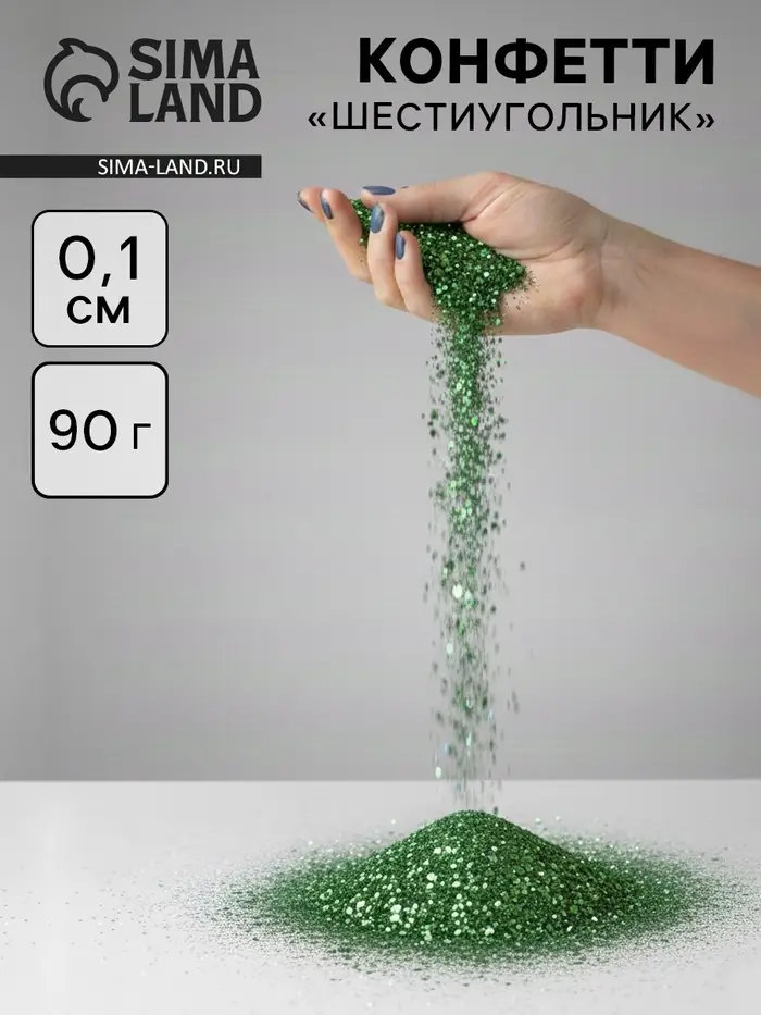 Конфетти «Шестиугольники» зелёные, металлик, 0.1 см, 90 г