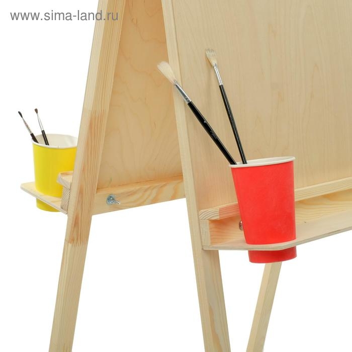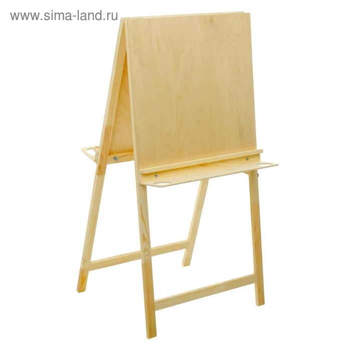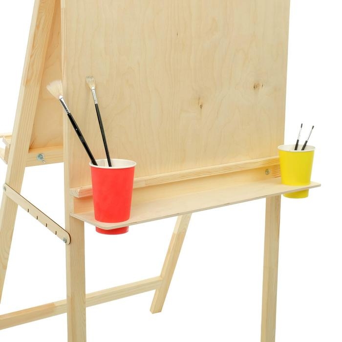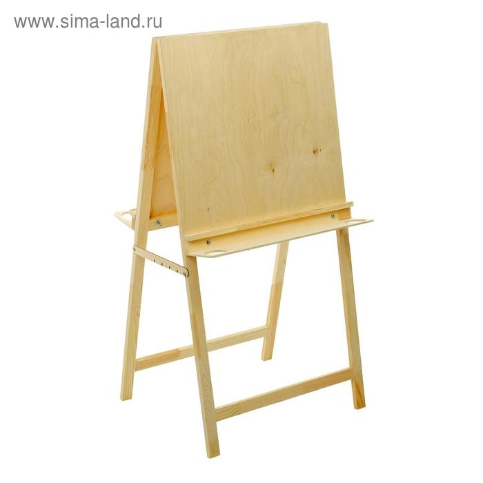 Напольный мольберт двухсторонний ""Хлопушка""- оптимальное соотношение функциональности и цены для начинающих художников и первого знакомства со знаковой живописью. Мольберт имеет простую конструкцию: пять положениий угла наклона рабочей поверхности и расширенные полки для художественных материалов с двумя отверстиями для стаканов. Бумагу на планшете можно закрепить кнопками или малярным скотчем, так же при необходимости планшет мжно снять. Мольберт подходит для занятий в студии и дома, он складывается и не занимает много места при хранении. Изготовлен в России из неокрашенной доски и фанеры высшего сорта сибирской сосны. При таком тщательном отборе материалов вы можете быть уверены, что конструкция не деформируется со временем и не рассохнется. Все поверхности зашлифованы для безопасности и комфорта работы художника.