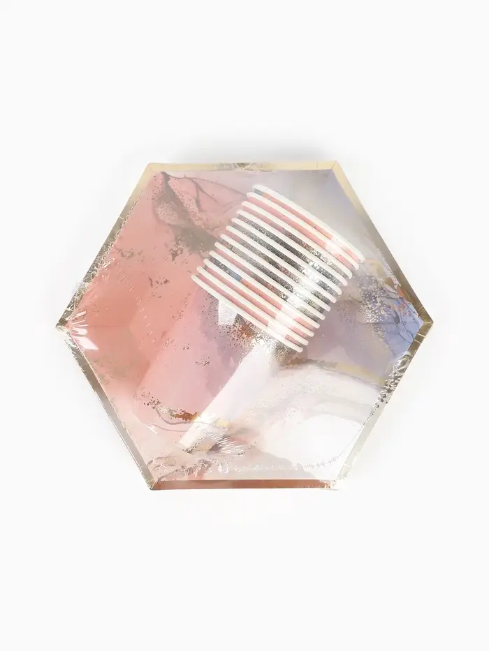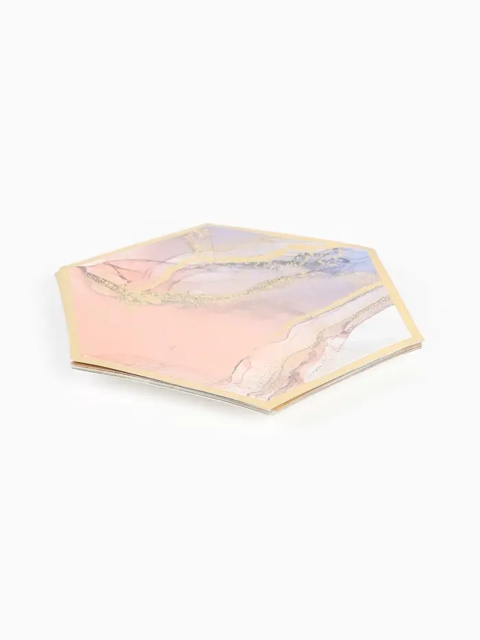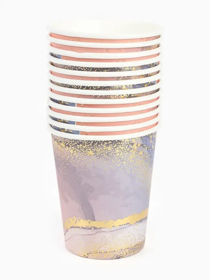 Набор посуды для праздника на 12 персон, мрамор розовый (тарелки 23 см, стакан 250 мл)