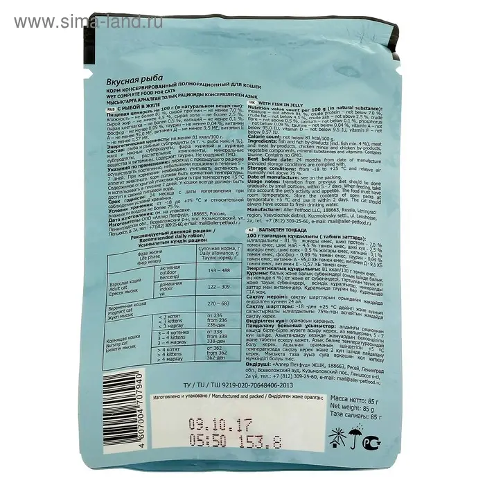 Рекомендации по кормлению: переход с предыдущего рациона следует осуществлять постепенно, небольшими порциями, в течение 5-7 дней. У кошки всегда должен быть доступ к свежей питьевой воде. При кормлении необходимо учитывать активность, возраст, размер и индивидуальные особенности Вашего питомца.