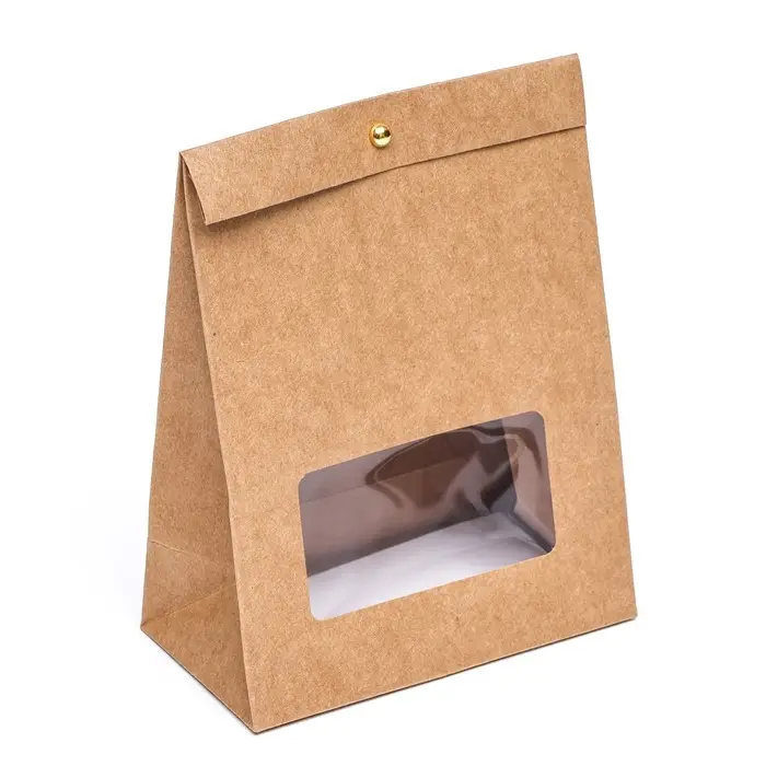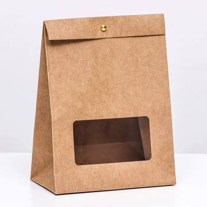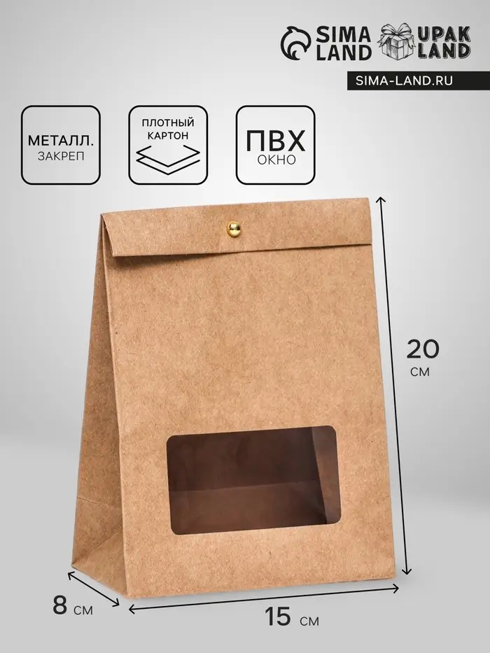 Коробка-пакет, крафт с окном, 20 х 15 х 8 см