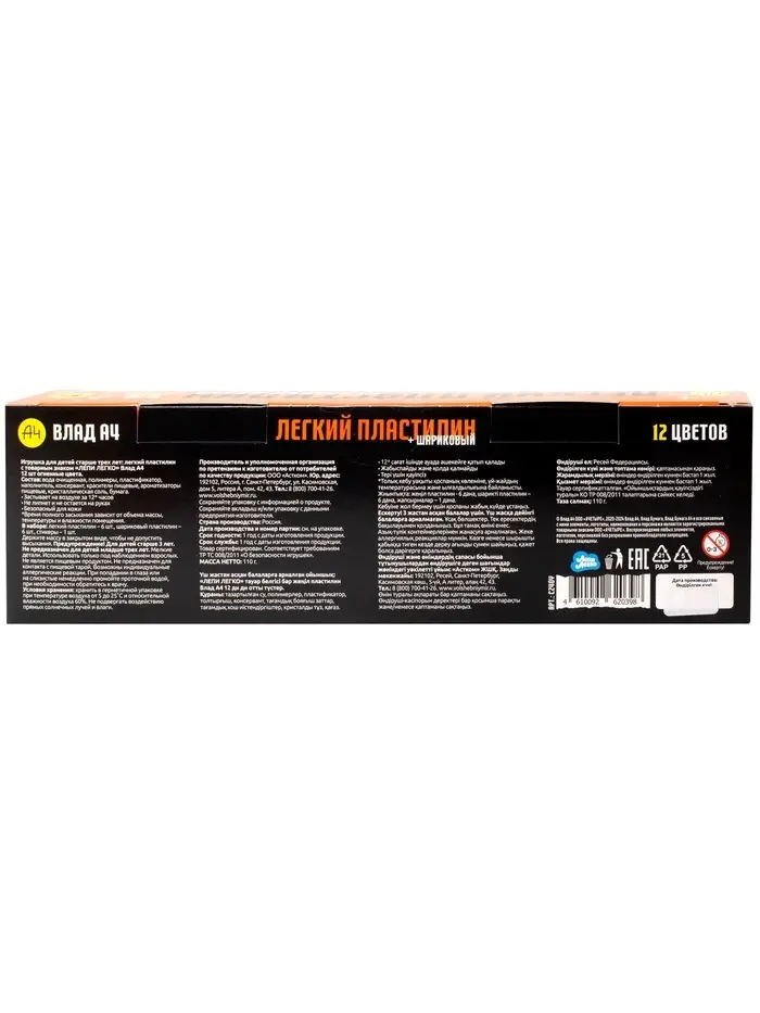Игрушка в наборе Легкий пластилин Влад А4 12 шт с шариковым пластилином огненные цвета коробка 10948