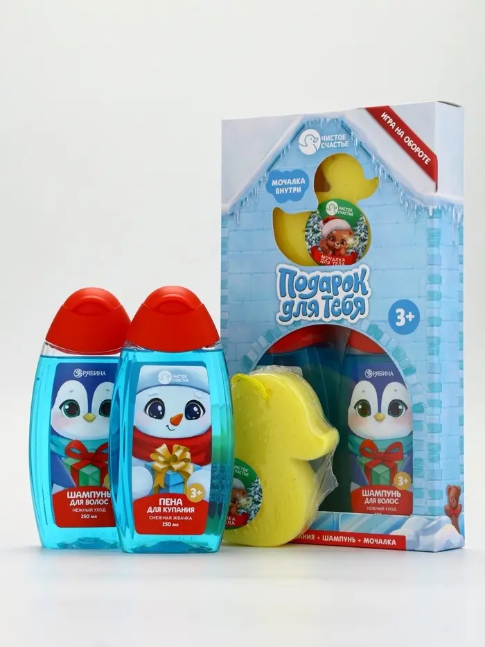 Подарочный набор для мальчика «Для тебя»: пена для купания, шампунь для волос и мочалка утка, Чистое счастье