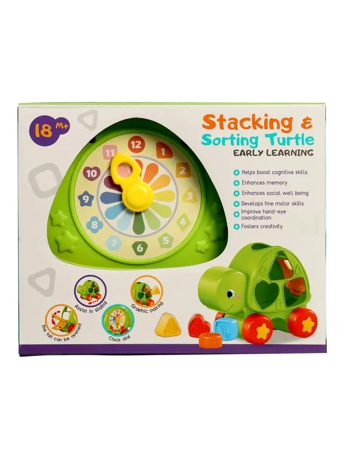 Развивающий сортер "Черепашка" с циферблатом, на колесиках
