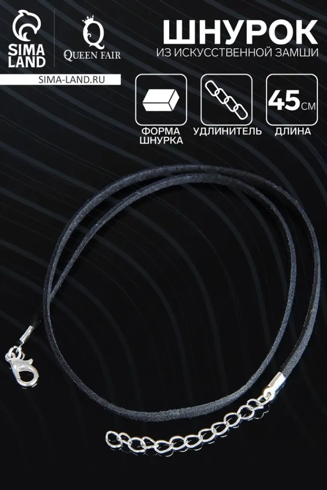 Шнурок из искусственной замши с замком, длина 45 см + удлинитель – идеальный выбор для создания стильных и элегантных украшений. Этот шнурок выполнен из высококачественного искусственного материала, который имеет приятную на ощупь текстуру и долговечность, при этом он экологичен и безопасен для кожи. Замок и удлинитель обеспечивают удобство при использовании и позволяют подогнать украшение под необходимый размер.